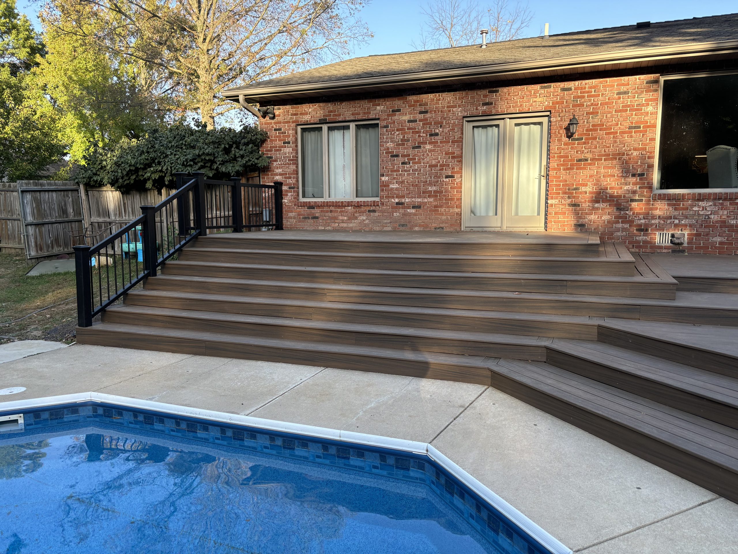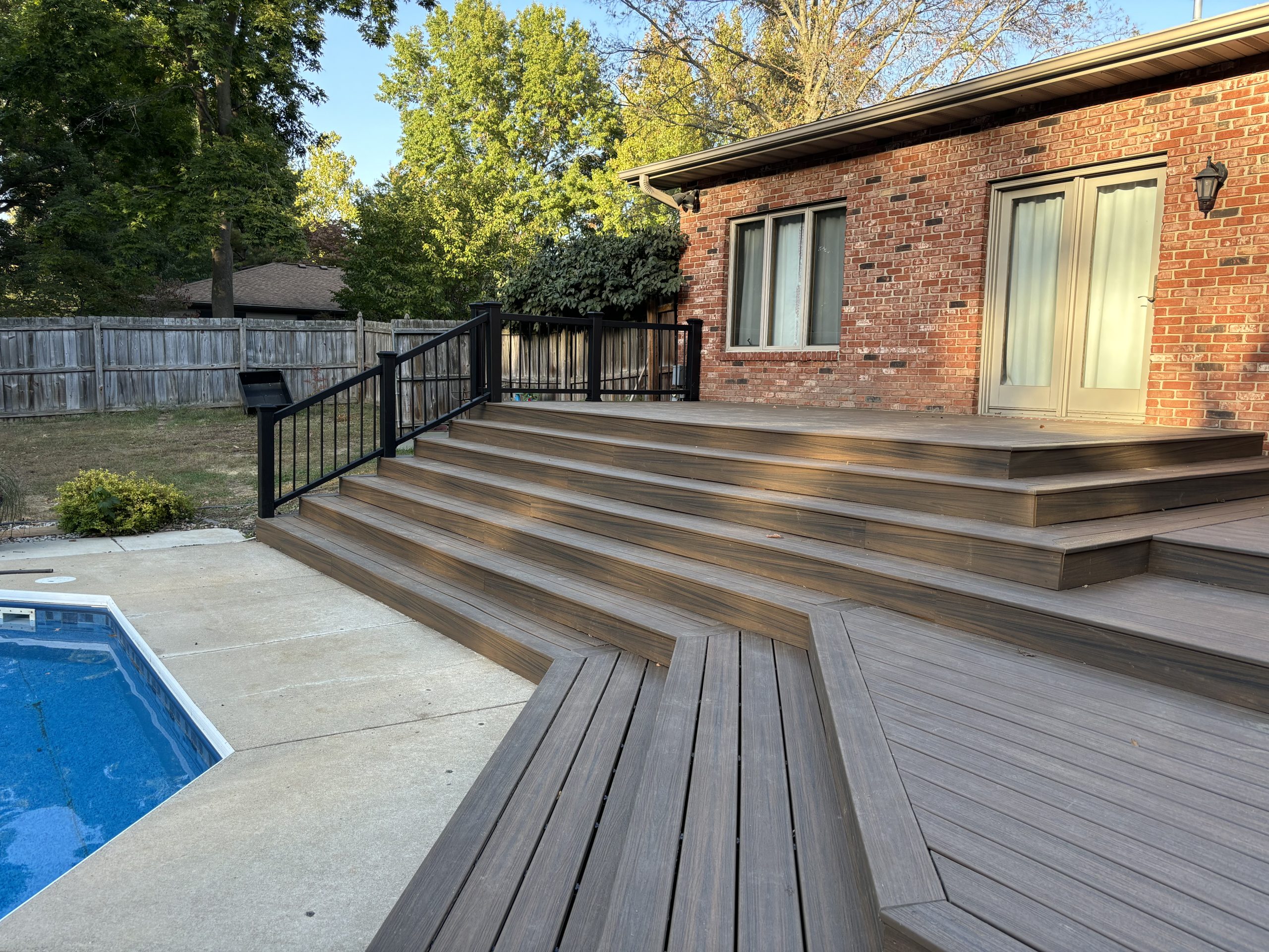 We used high-quality composite decking for all areas, offering the natural look of wood without the upkeep. Composite decking is resistant to fading, staining, and weather damage, making it perfect for Illinois climates.